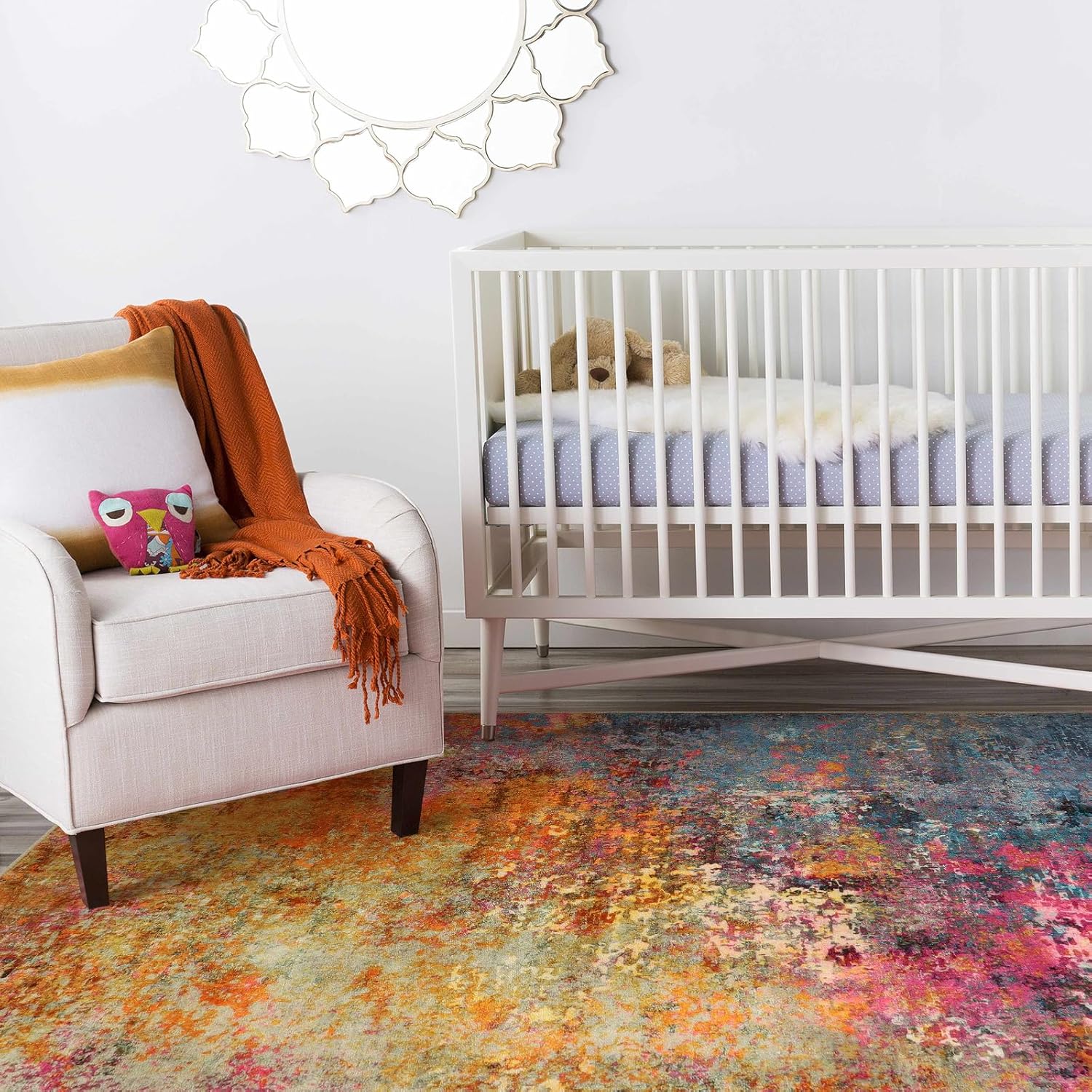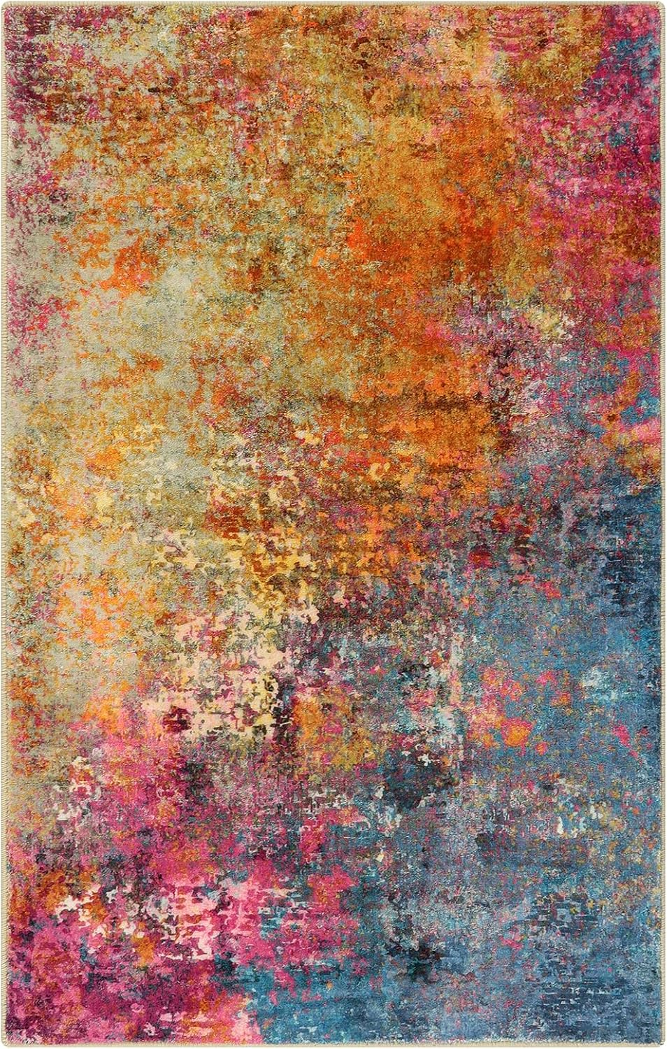 Featuring a rainbow of colors and a contemporary abstract design, this rug adds a modern touch to your space while creating a cozy and inviting atmosphere. Whether placed in front of the kitchen sink, by the bathroom doorway, or as an accent piece in the living room, this rug is sure to make a statement.